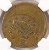 NGC (1839-1857) braided hair large cent struck 35% off-center at 5 o'clock. The coin shows a lot of planchet and design, and has good eye-appeal as an off-center large cent. The error occurred...