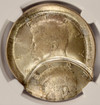 NGC Kennedy half struck 65% off-center at 2 o'clock. A major off-center, and scarcer than on the smaller denominations of coins from this era.