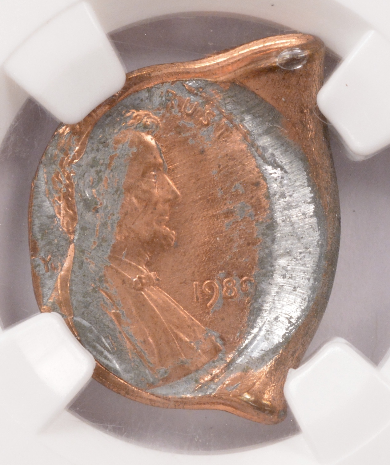 Above: the two Lincoln cents were struck into each other, and form a "mated pair."