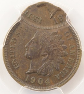 Above: a triple-struck Indian cent. The 1 & 2nd strikes are on-center, and the 3rd strike is off-center.
