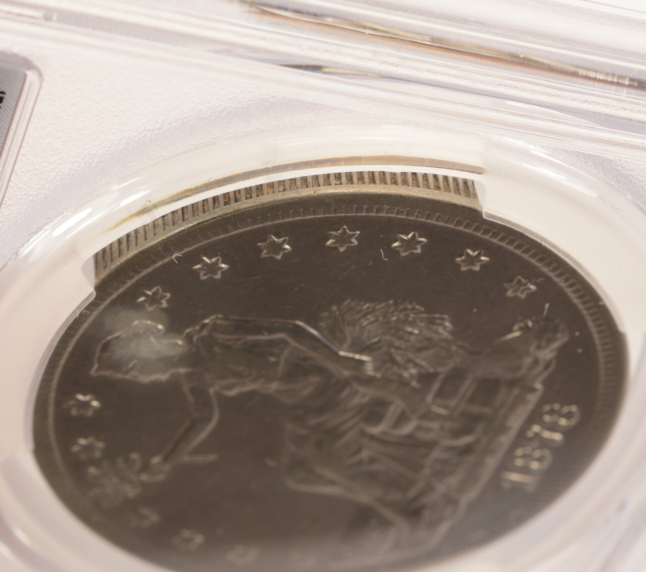 If a strike thru (see definition) has the item retained, that is "stuck to or with" the coin, it is considerably more valuable and always much scarcer. Generally, strike thru errors do not have the item retained, and there are probably over 100 struck thru coins existing for every 1 that is retained. Items retained can include anything that can fit between and be struck into a coin. Most often, retained struck thru coins are found with pieces of plastic, grease, pieces of metal, slag, or fragments of planchet material. Numerous other examples exist, however.